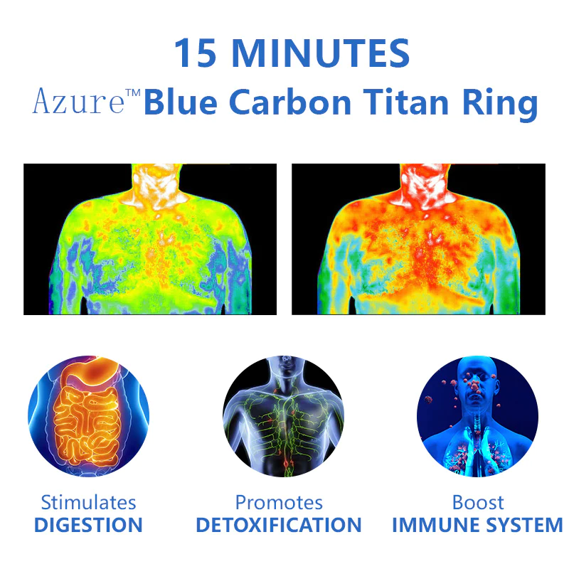 The Azure™ Blue Carbon Titan Ring is a high-tech wrist accessory made of blue terbium and black magnetic materials, designed to help improve cellular permeability, promote material exchange inside and outside cells, increase oxygen levels and metabolic rates within the body, and accelerate the process of waste elimination!