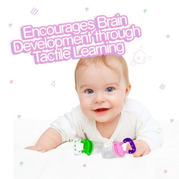 It’s a safe way to start introducing baby to solid foods as your child goes through teething. It’s also designed with textured surfaces and soft chewable silicone that alleviates teething discomfort.
