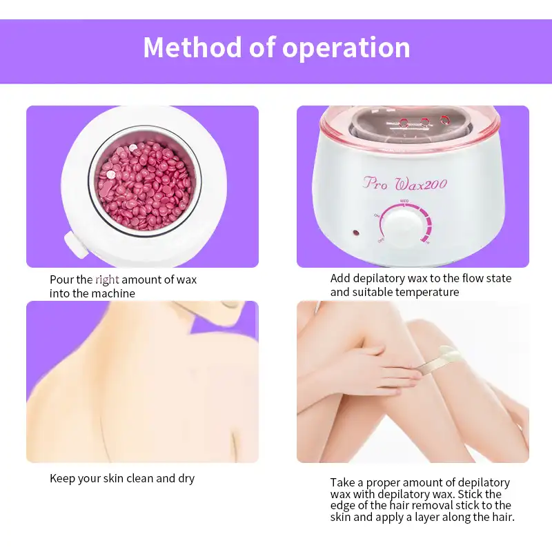 2. Using a spatula, spread a layer of wax onto the area to be treated against the direction of hair growth. (make sure wax is not too hot)