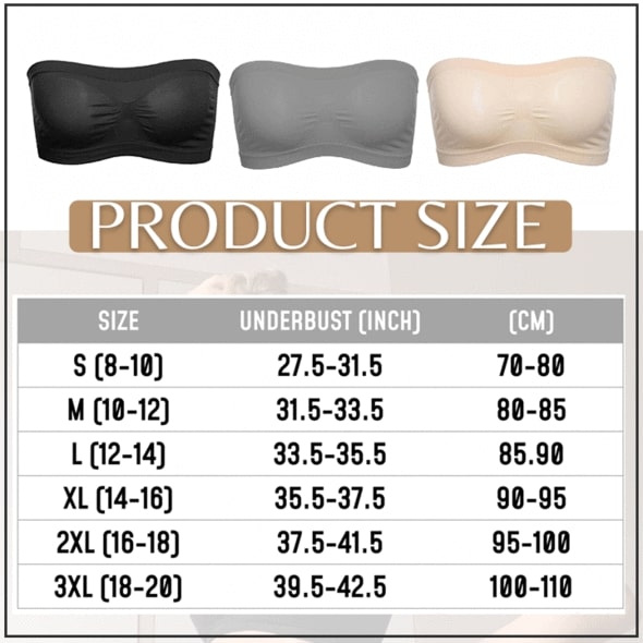 PACKAGE INCLUDES: 1 x Strapless bandeau bra OR 1 x Basic Set (Nude, White, Black)