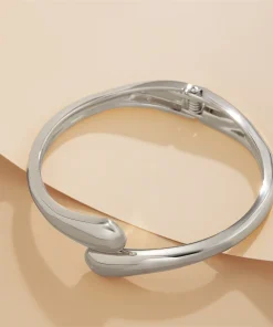 Wide Metal Bangle Ring for Women Gold and Silver Color Chunky Waterdrop Open Wrist Cuff Thick Irregular Twisted Bracelet Jewelry