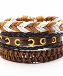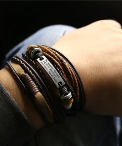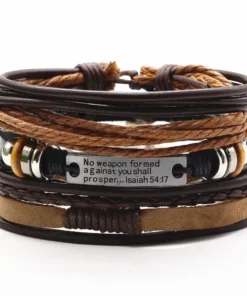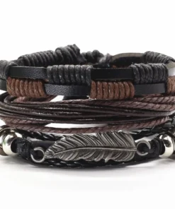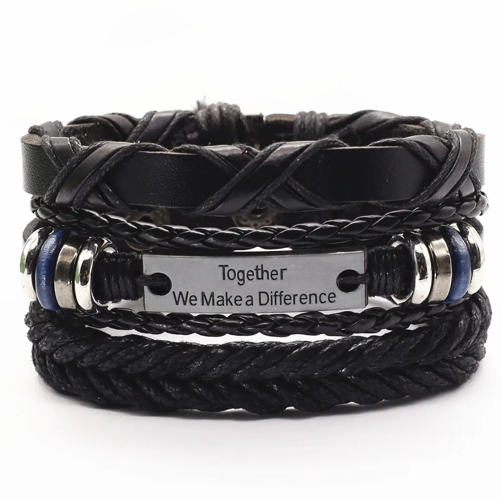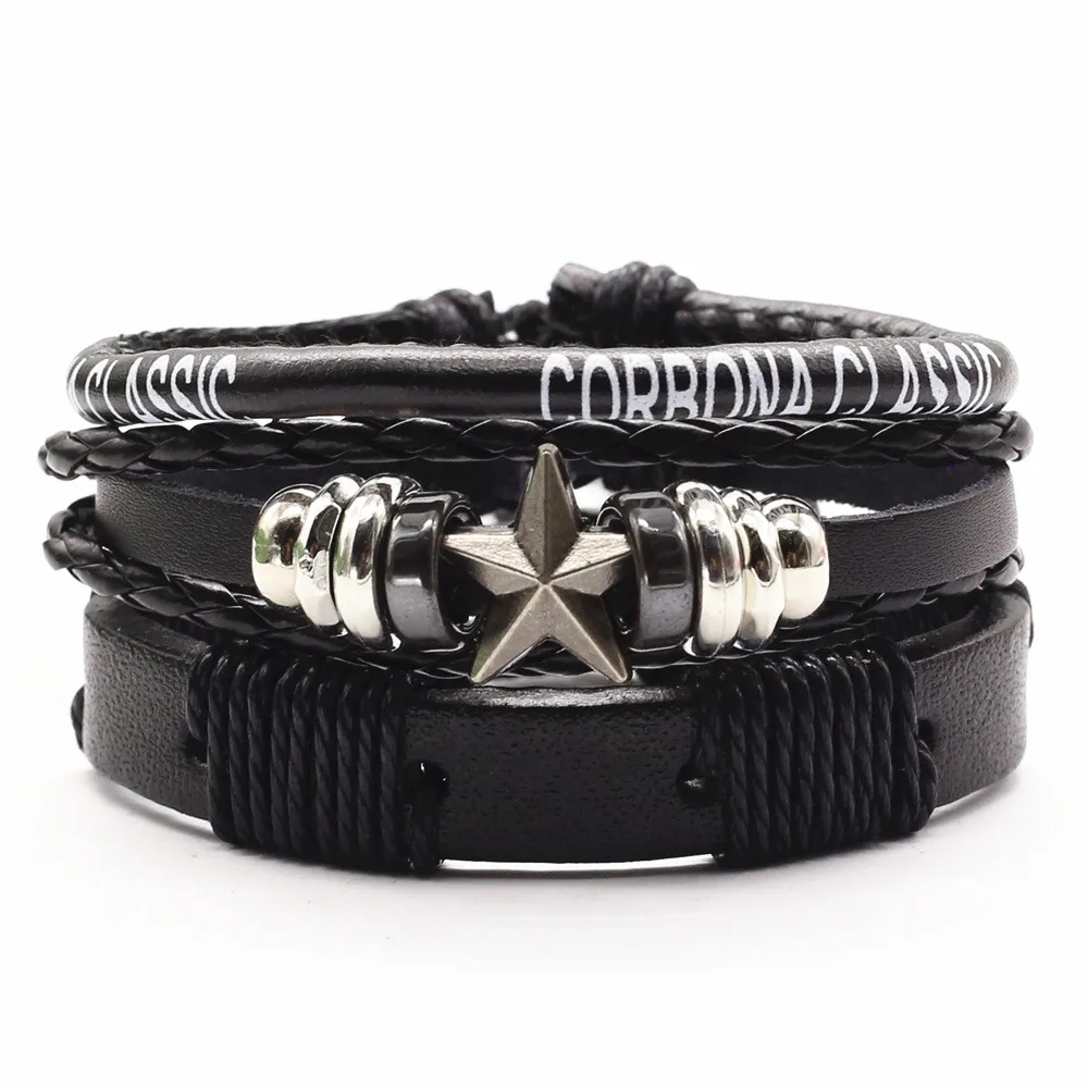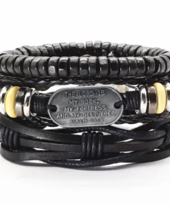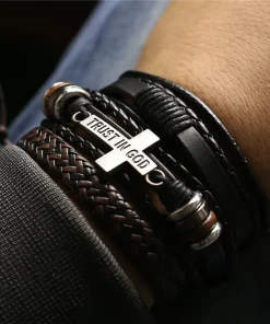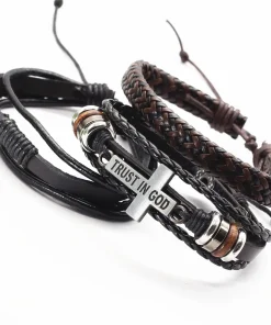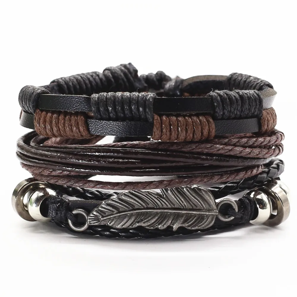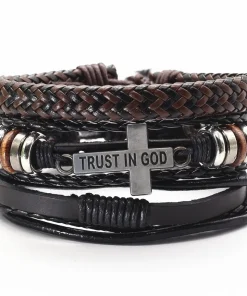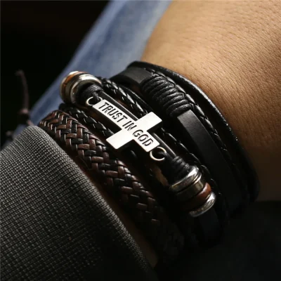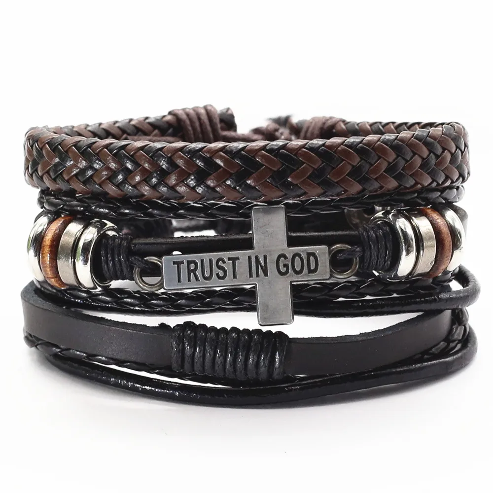 3 Pcs/Set Leather Bracelets Men Bangles For Women Wood Beads Feather TRUST IN GOD Cross Charm Homme Gift Jewelry Freely Shipping
