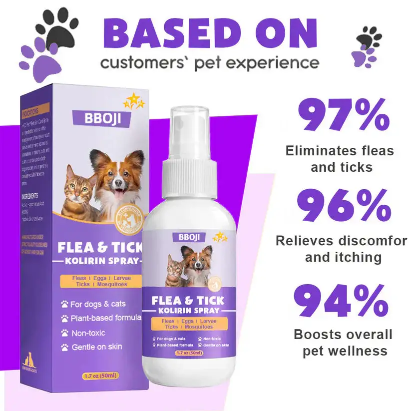 Act Fast! Take advantage of our limited-time 70% discount for the first 50 orders. Protect your pet today with BBOJI™ Flea & Tick Kolirin Spray!