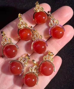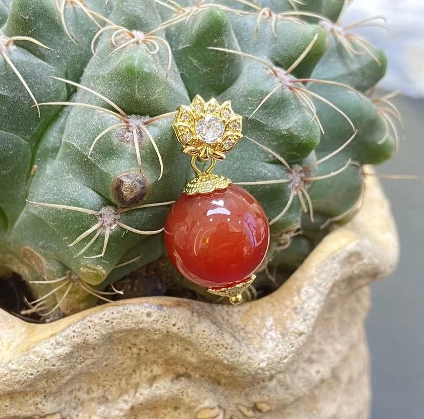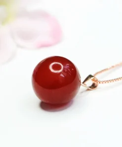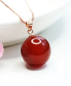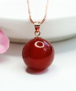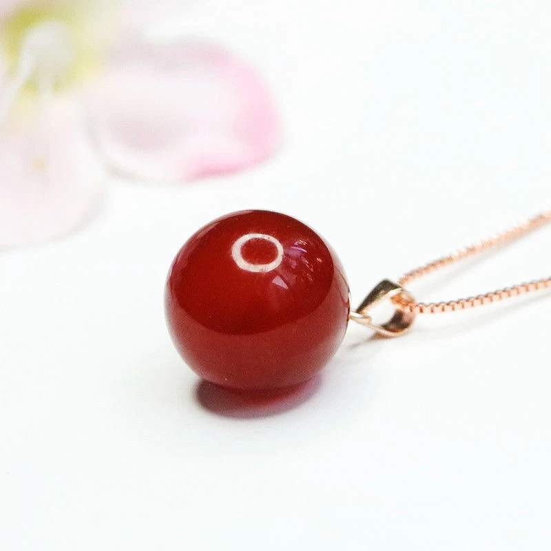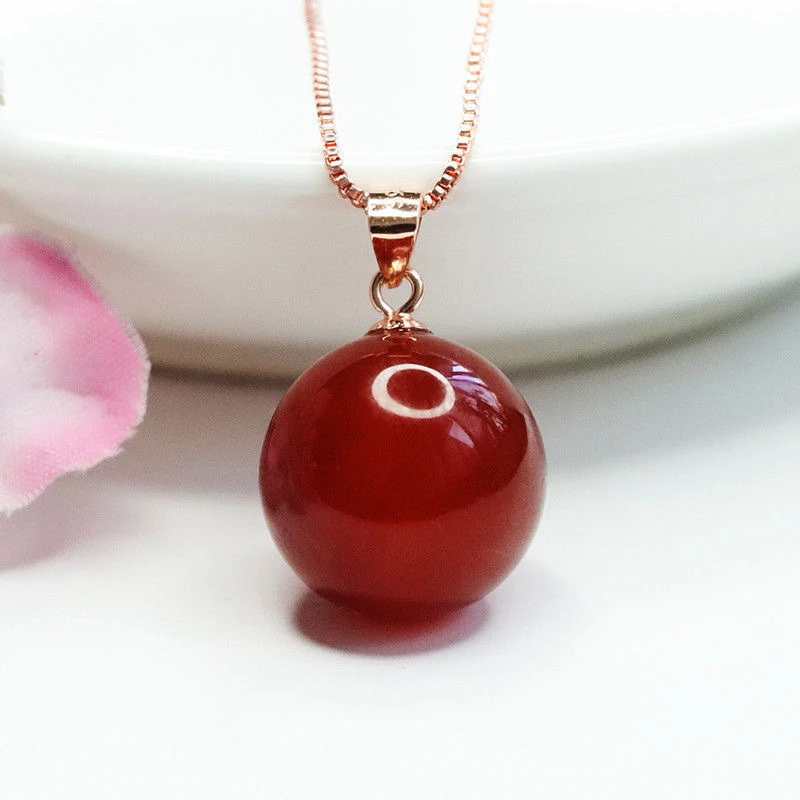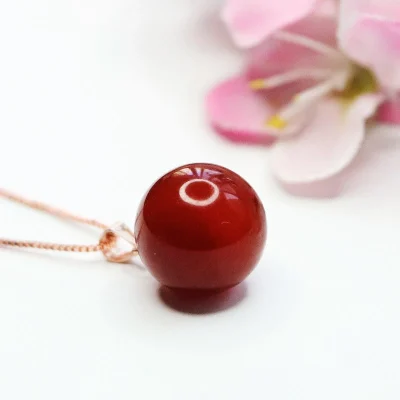 wholesale nature Red Agate Round Bead Pendant Necklace 925 Silver Plated brass Clasp Head Women’s Fashion Jewellery
