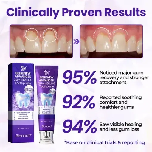 Biancat® BeeRenew is a naturally formulated toothpaste that combines purified bee venom with clinically tested plant extracts to support gum repair and overall oral health. Use it just like a regular toothpaste — apply a small amount to your toothbrush and brush normally.