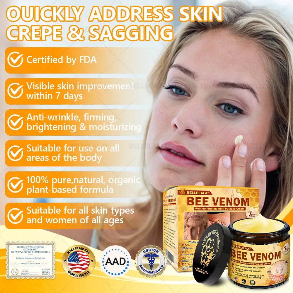 BELLELALA® BEE VENOM Wrinkle-Firming Multi-Purpose Cream addresses all the problems associated with sagging skin, wrinkles and more!