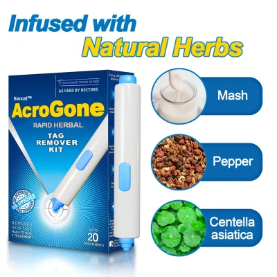 Despite being medically harmless, these growths often cause aesthetic concern and physical discomfort. In response to this, Biancat™ introduces AcroGone, a potent, skin-friendly solution designed to address these issues. Biancat™ AcroGone Rapid Herbal Tag Removal Set is a non-invasive, painless, and rapid solution meticulously crafted to address the discomfort caused by skin tags. Harnessing the potency of natural herbal ingredients, including mash and pepper, this skin-friendly formula gently targets skin tags, shrinking them at their core without leaving any scars.