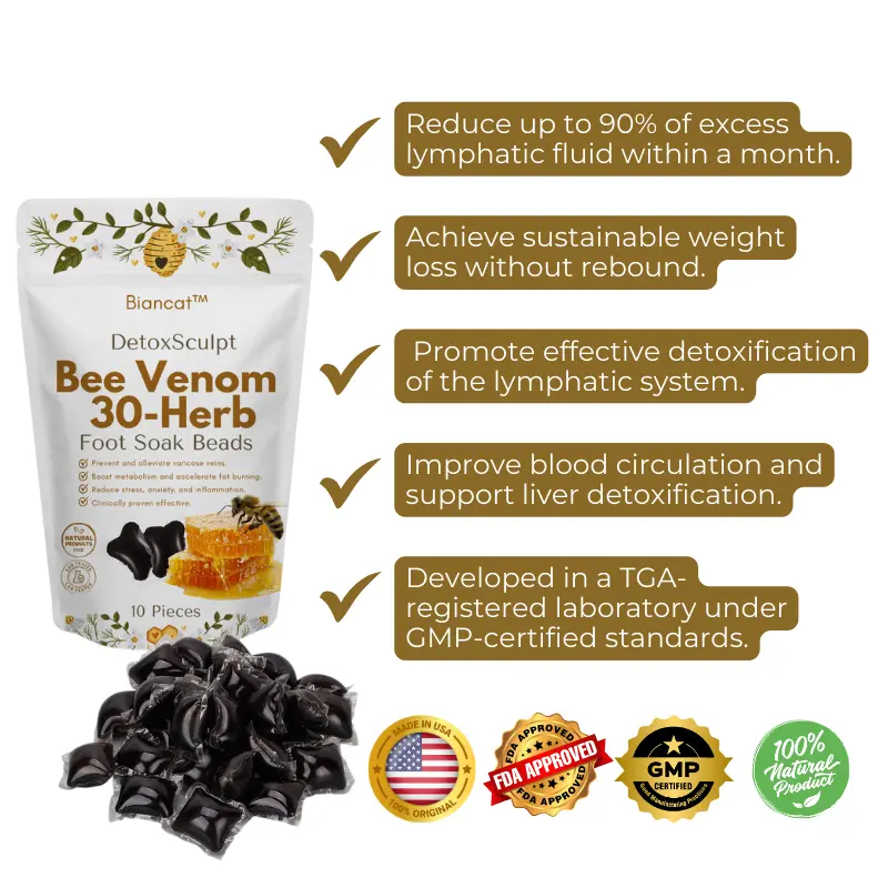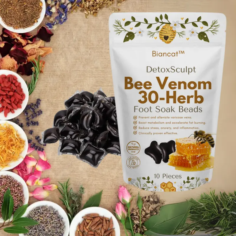 The Biancat™ DetoxSculpt Bee Venom & 30-Herb Foot Soak Beads offer a natural, holistic approach to enhancing your wellness routine. Infused with powerful ingredients like bee venom, royal jelly, and a unique blend of 30 handpicked herbs, this product targets a range of concerns, from detoxification to body sculpting. Whether you want to relieve swelling, manage varicose veins, improve circulation, or boost overall vitality, these foot soak beads promise to deliver visible results in as little as 3-6 weeks.
