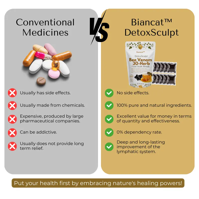 Dr. John Smith, a renowned lymphatic medicine specialist, highly recommends Biancat™ DetoxSculpt as an alternative to invasive treatments for lymphatic health and swelling. Its combination of bee venom and herbal extracts has been proven to stimulate circulation and reduce inflammation, offering relief from conditions like lymphedema and swelling.