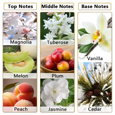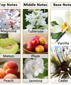 - Ingredients: Magnolia, Melon, Peach, Tuberose, Plum, Jasmine, Vanilla, Cedar.