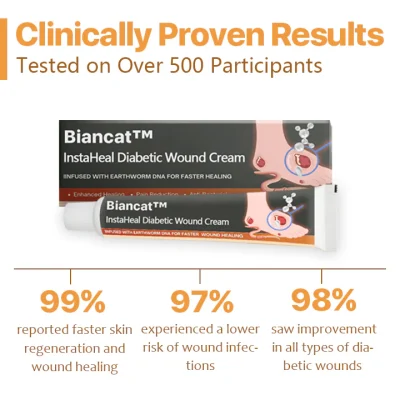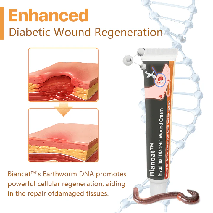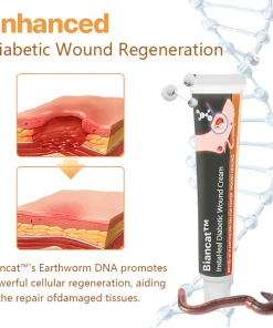 Biancat™ InstaHeal Diabetic Wound Cream is a breakthrough in wound care technology, specifically designed to address the unique challenges faced by individuals with diabetes. Central to its formulation is Earthworm DNA, a natural ingredient renowned for its exceptional regenerative abilities. Earthworms possess the remarkable ability to regenerate entire segments of their bodies, a trait that has been harnessed and incorporated into AQA™. This potent DNA accelerates the natural healing process, making even the most severe diabetic wounds heal up to 10 times faster. By stimulating rapid cell regeneration and tissue repair, AQA™ effectively shortens the recovery time and reduces the risk of complications.
