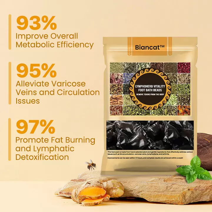 Biancat™ LymphoHerb Vitality Foot Bath Beads offer a unique and holistic approach to improving your overall health. This natural foot bath therapy works to detoxify your body, promote weight loss, reduce inflammation, and support circulatory health. Designed to revitalize both your body and mind, these foot bath beads provide relief for conditions such as varicose veins, lymphedema, chronic pain, foot fatigue, and more. They are a must-have for anyone looking for a natural, effective way to detoxify and revitalize.