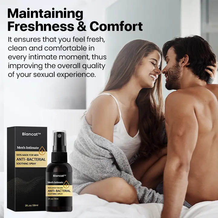 The Biancat™ Men’s Intimate Anti-Bacterial Soothing Spray is designed for use before and after sex, effectively cleaning the intimate area and removing any residue from condoms or lubricants. It ensures you feel clean, fresh, and comfortable during every intimate moment, enhancing the quality of your sexual experiences.