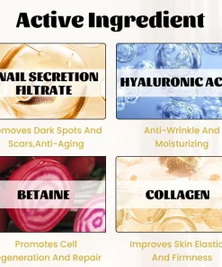 Biancat™ Snail Anti-Aging Firming Cream is enriched with 92% natural snail secretion filtrate (no snails were harmed), combined with ingredients like hyaluronic acid, collagen, and betaine. It promotes skin cell regeneration and repair, resists free radicals, restores elastic fibers, and supplements collagen, enhancing the skin’s elasticity and firmness. It removes dark spots and scars, brightens and smooths the skin, bringing back a youthful and vibrant appearance.