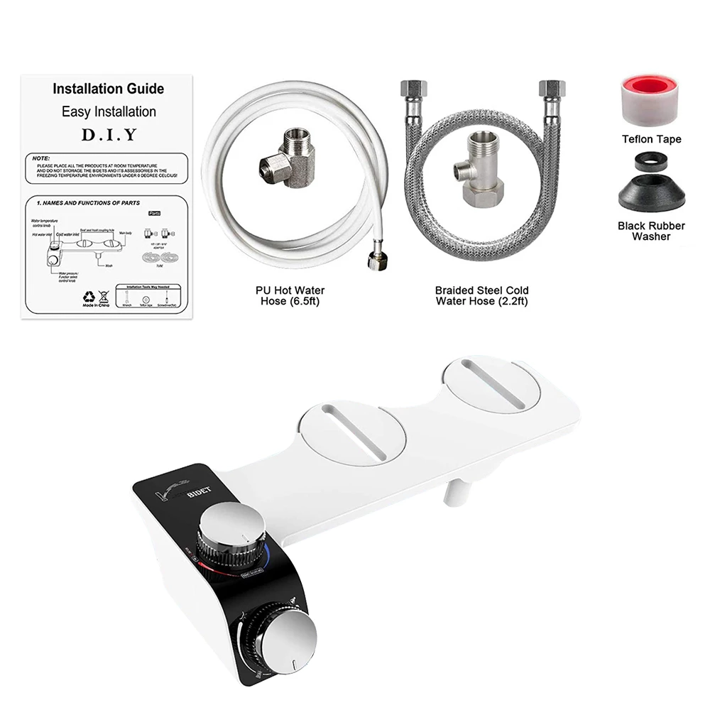- Package Includes: 1 X Bidet, 2 X Water Separator, 1 X Hose, 1 X PU Tube, 1 X English Manual, 1 X Accessory