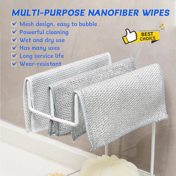 Bikenda™ Multi-purpose Nanofiber Wipes feature advanced diamond-shaped lattice weaving technology to easily remove rust, oil stains, stubborn mold and more without damaging your pots or hands. Thanks to this technology, it instantly absorbs moisture, dries quickly, is easy to clean, and leaves no residue.