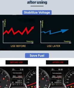 Bikenda® OBD2 High-Performance Fuel Saver connects to the vehicle’s OBD2 interface, providing access to the car’s Engine Control Unit (ECU) data. It collects information about engine performance, fuel supply, and driving patterns. This data is transmitted to the intelligent control unit of Bikenda® Fuel Saver. Based on real-time data obtained from the vehicle’s ECU, the intelligent control unit of Bikenda® Fuel Saver can make real-time adjustments to the engine’s performance and fuel injection. It optimizes the air-fuel ratio, ignition timing, and fuel injection to ensure that the fuel is burned more efficiently, reducing waste.