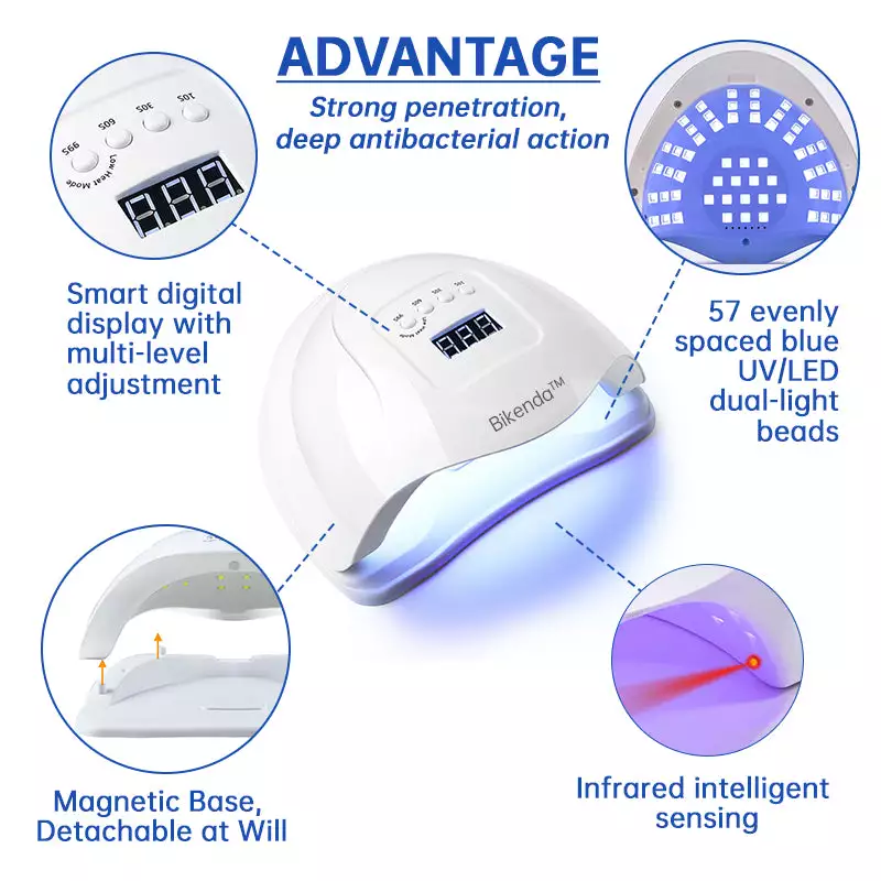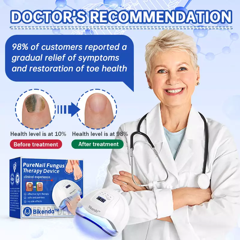 The Bikenda™ PureNail Fungus Laser Therapy Device combines blue light therapy and infrared cold laser technology to effectively eradicate fungus, reduce inflammation, and prevent infections. This device relieves nail discomfort, swelling, and other symptoms like thickening, flaking, itching, and pus buildup, making it a powerful tool in treating toenail fungal infections.