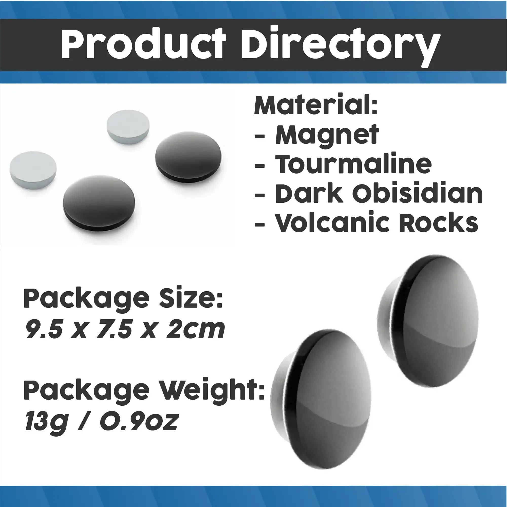 - Material: Magnet, Tourmaline, Dark Obisidian, Volcanic Rocks