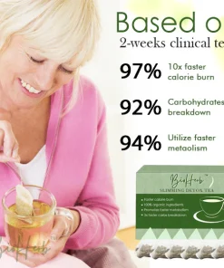 BioHerb™ Slimming Detox Tea is designed to support weight loss by utilizing a synergistic approach that targets multiple aspects of the body’s metabolism and detoxification processes. Through a scientific formulation and careful blending of ingredients, this tea aims to enhance the body’s natural fat-burning capabilities and promote overall well-being.