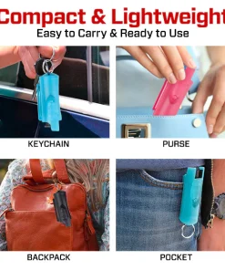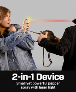 This self-defense spray is a good size, it fits well in my hand. The laser light is easy to use, and it makes me more confident if I ever need to use it. I like that it can go on my key chain. I am very pleased with this product