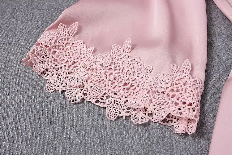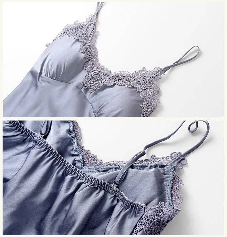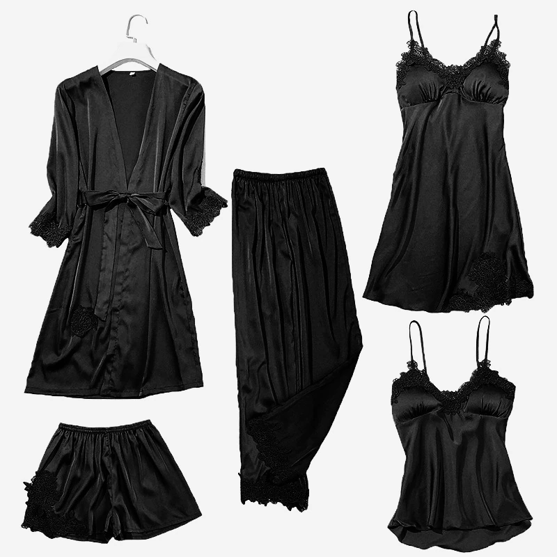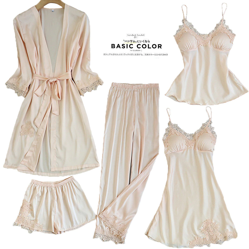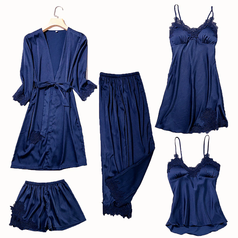 Blushy Silk 5 Piece Pajama Set the following product features: