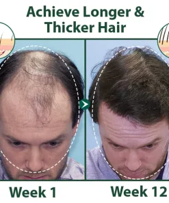 I couldn’t believe how nice my hair has been coming in since using this. My hair is growing thicker and the bald spots have nicely filled in. Very happy with the product! Only took around 3 months to save my hair!