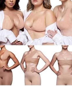 This works for any bust size, – A-E cup. Confidently wear backless dresses, wedding gowns, swimsuits, halter tops, backless, strapless, deep plunge tops, swimsuits, low cut tops while having the support and confidence-boost of a nice-looking & well-shaped cleavage!