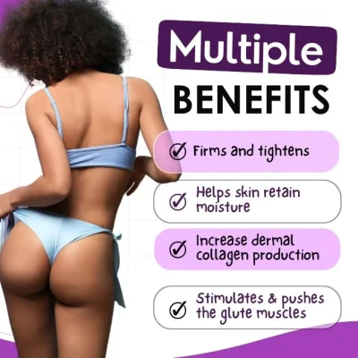 Stimulating Collagen Production: Active formula in BootyBoost™ work synergistically to stimulate collagen production in the skin. Collagen is a vital protein responsible for maintaining the skin’s elasticity and firmness. By boosting collagen production, BootyBoost™ helps enhance the overall appearance and texture of the buttocks, making them firmer and more supple.