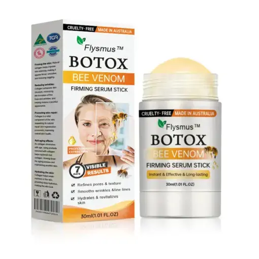 The flysmus™ Botox Bee Venom Firming Serum Stick is an effective solution for diminishing visible signs of aging and wrinkles, resulting in a rejuvenated skin appearance within a span of 3-5 weeks. This cream incorporates scientifically proven ingredients likeSapphire-Infused Triple Peptide,Tri-Hyaluronic Acid and Micro Algae which effectively combat wrinkles and promote skin vitality.
