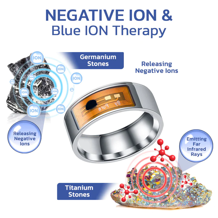 The BPGuard™ Negative Ion Therapy Blood Pressure Control Ring functions through two primary mechanisms – Germanium negative ion emission and Blue ION Therapy.