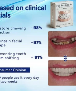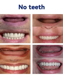 Instant Perfect Smile: Transform your smile instantly with the . Experience the satisfaction of achieving a flawless. customized fit right away. Our innovative denture set eliminates the discomfort of poorly fitting dentures. offering you a snug and natural feel that makes your dentures feel like a true part of your mouth. Say goodbye to sore spots and irritation as Denture Set provides immediate relief. allowing you to enjoy your smile with newfound confidence and comfort. Enjoy a seamless transition to a better-fitting. more comfortable denture experience without delay.