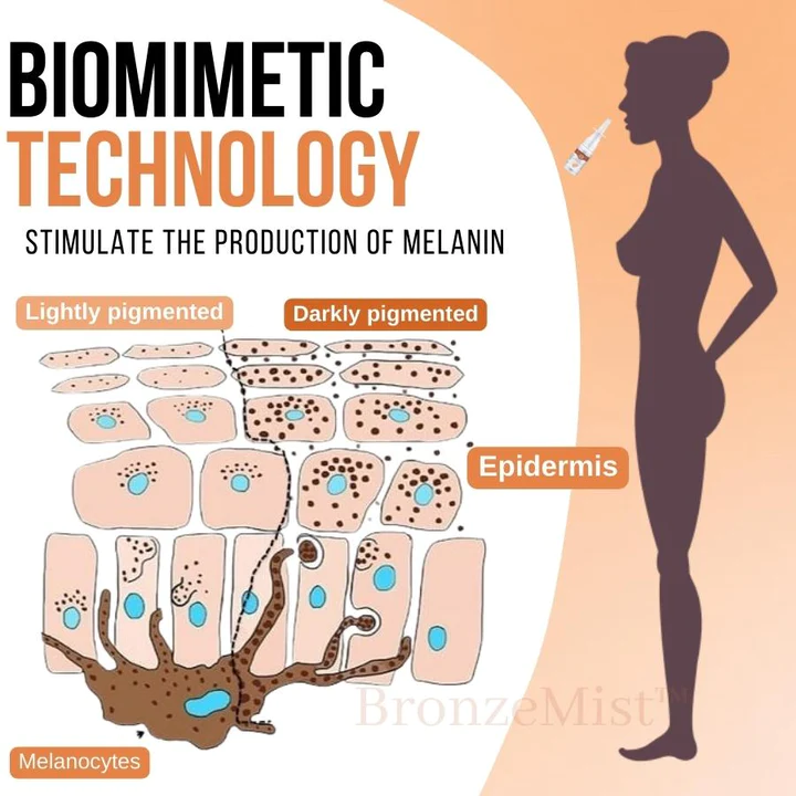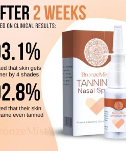 BronzeMist™ Tanning Nasal Spray uses biomimetic technology to stimulate the production of melanin, the pigment responsible for giving your skin its color. Melanin is naturally produced in response to UV exposure, but BronzeMist™ Tanning Nasal Spray triggers the same process without the need for harmful UV rays. Simply spray it into your nose and let the formula do the rest.