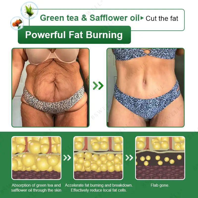 Green tea’s catechins promote fat burning by speeding up metabolism and preventing fat accumulation, while safflower oil, rich in linoleic acid, supports fat breakdown and localized fat reduction, improving blood circulation and eliminating body fat.