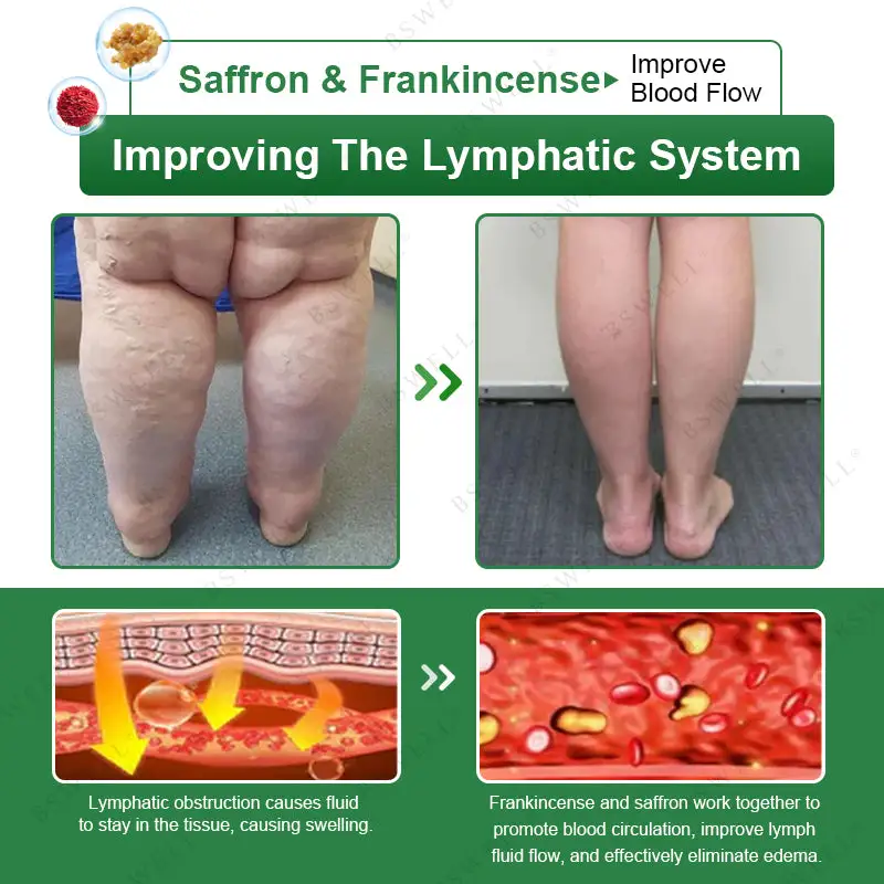 Frankincense and saffron’s combined anti-inflammatory, antioxidant, and immune-boosting effects support the lymphatic system, addressing inflammation, enlarged lymph nodes, and edema, promoting better circulation and lymphatic drainage.
