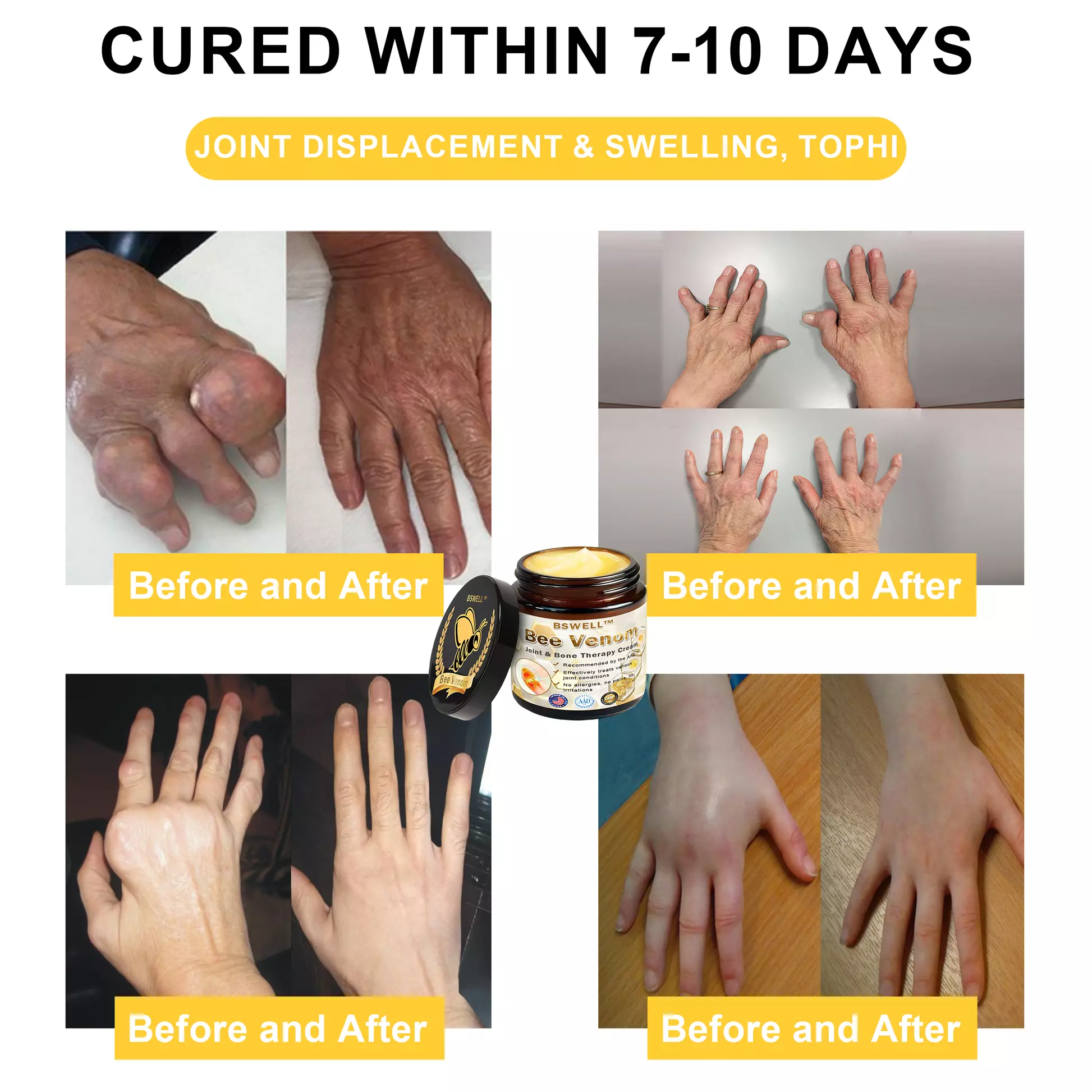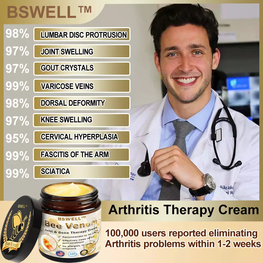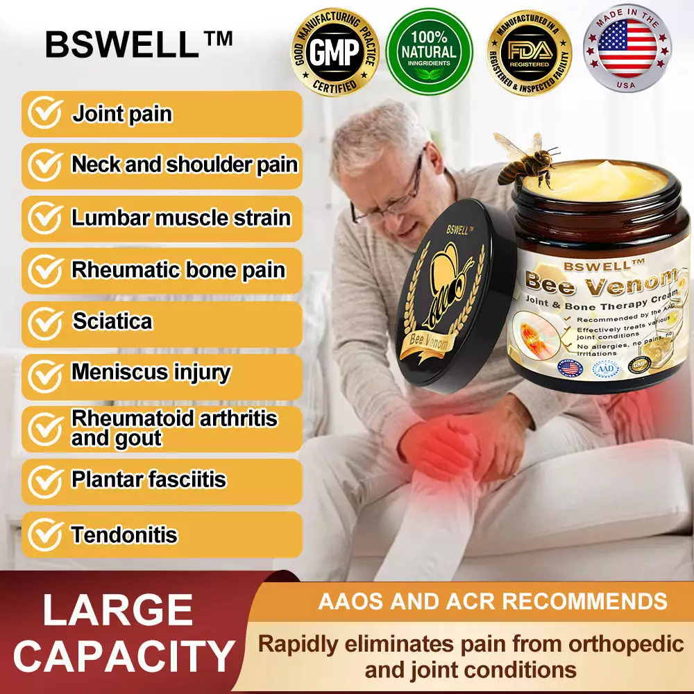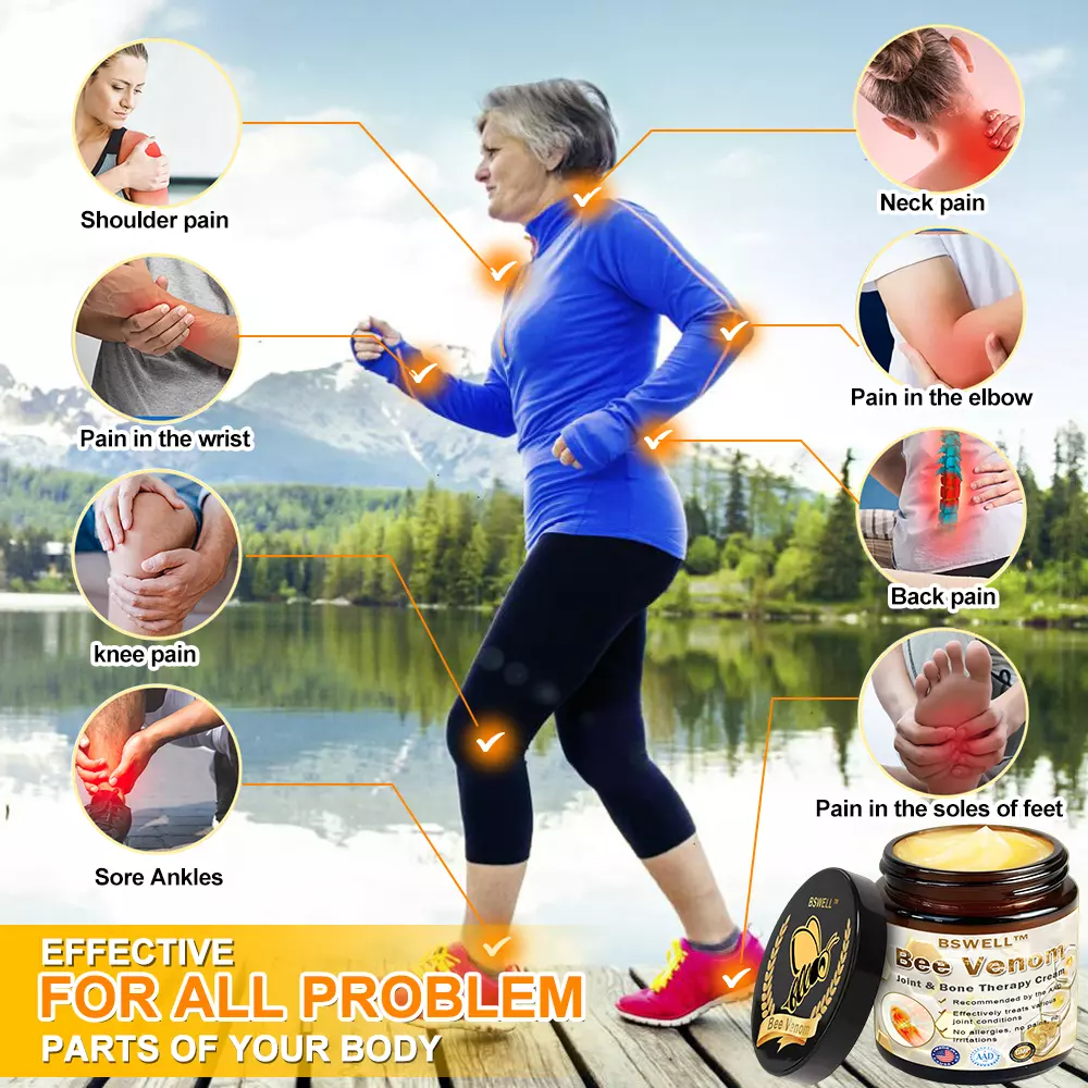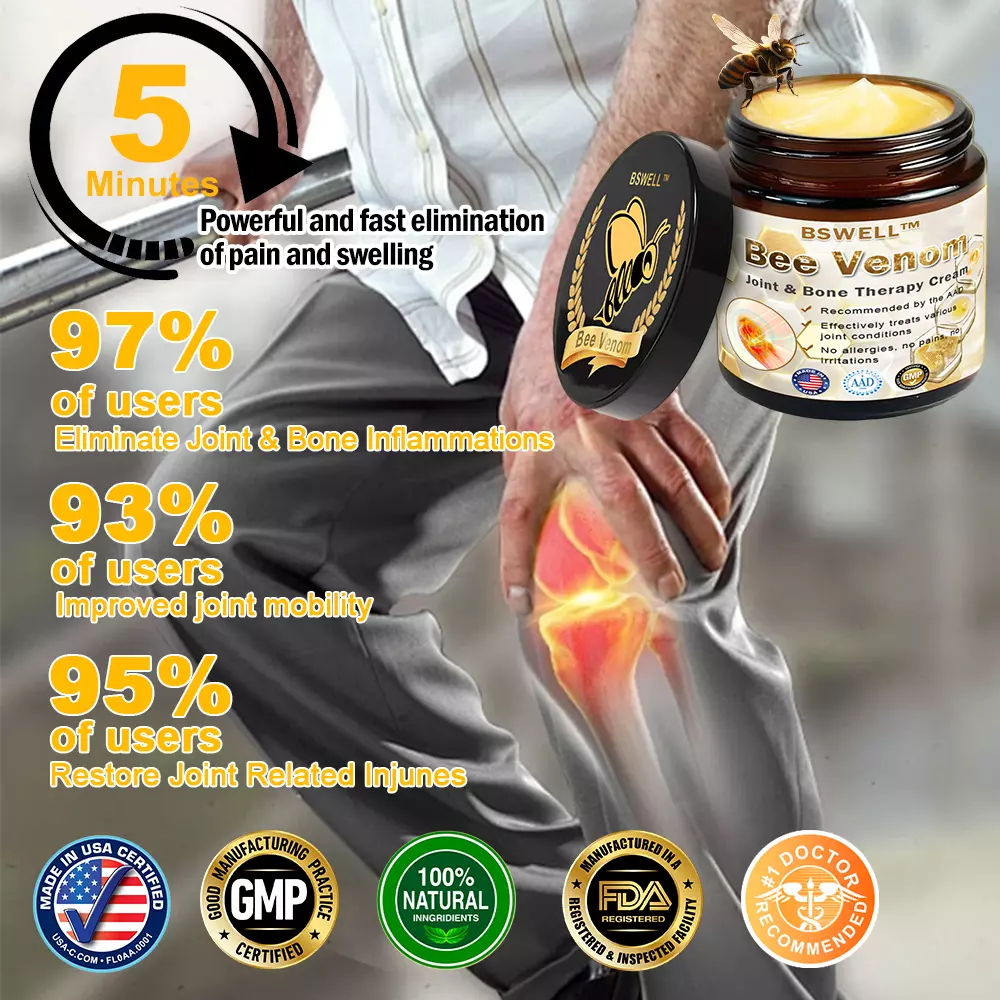 The provided text appears to be a marketing message promoting the BSWELL™ Bee Venom Instant Ultra Strength Pain Relief Therapy Cream, emphasizing its effectiveness in treating joint and spinal issues. Here’s a breakdown of the key components: