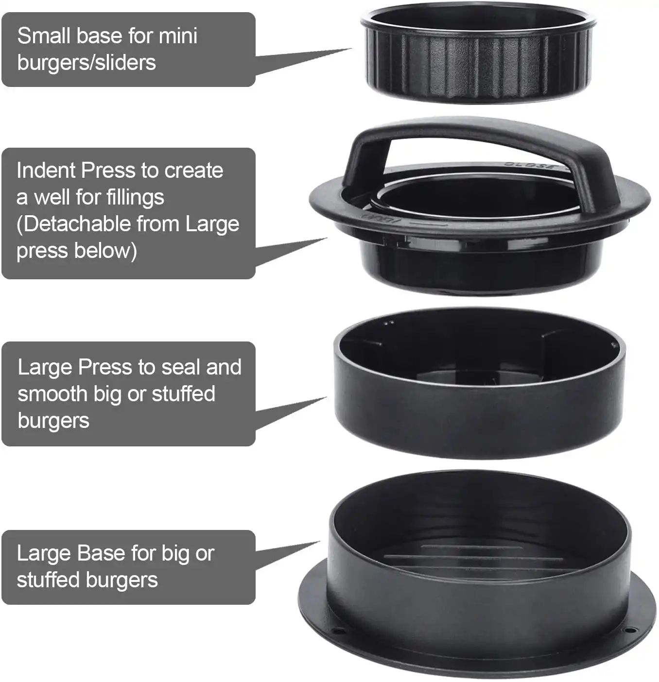 Stuff stuffed burgers press by as-onto is convenient, practical, compact, durable, you can create the perfect stuffed hamburger with it!