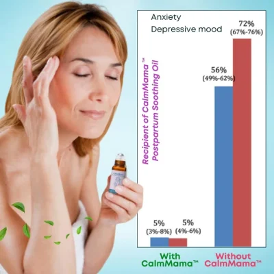 Similarly, a 2014 study investigated the use of aromatherapy during post pregnancy. Women who used a CalmMama™ Postpartum Soothing Oil reported lower levels of anxiety & depression than those who have not. The results suggest that CalmMama™ aromatherapy may be a safe and effective way to reduce stress and anxiety during the postpartum period.