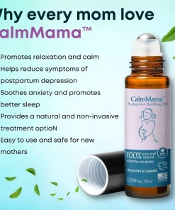 Introducing CalmMama, the essential oil blend specially formulated to help ease the symptoms of postpartum depression. With a soothing blend of natural ingredients, CalmMama™ Postpartum Soothing Oil offers a calming and nurturing experience to help new mothers feel more relaxed and at ease during this challenging time. Whether inhaled directly or diffused in a room, CalmMama™ can help promote a sense of tranquility and peace, supporting new mothers in their journey towards emotional well-being.