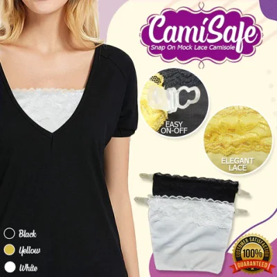 - PACKAGE INCLUDES: 3 x CamiSafe Snap On Mock Lace Camisole