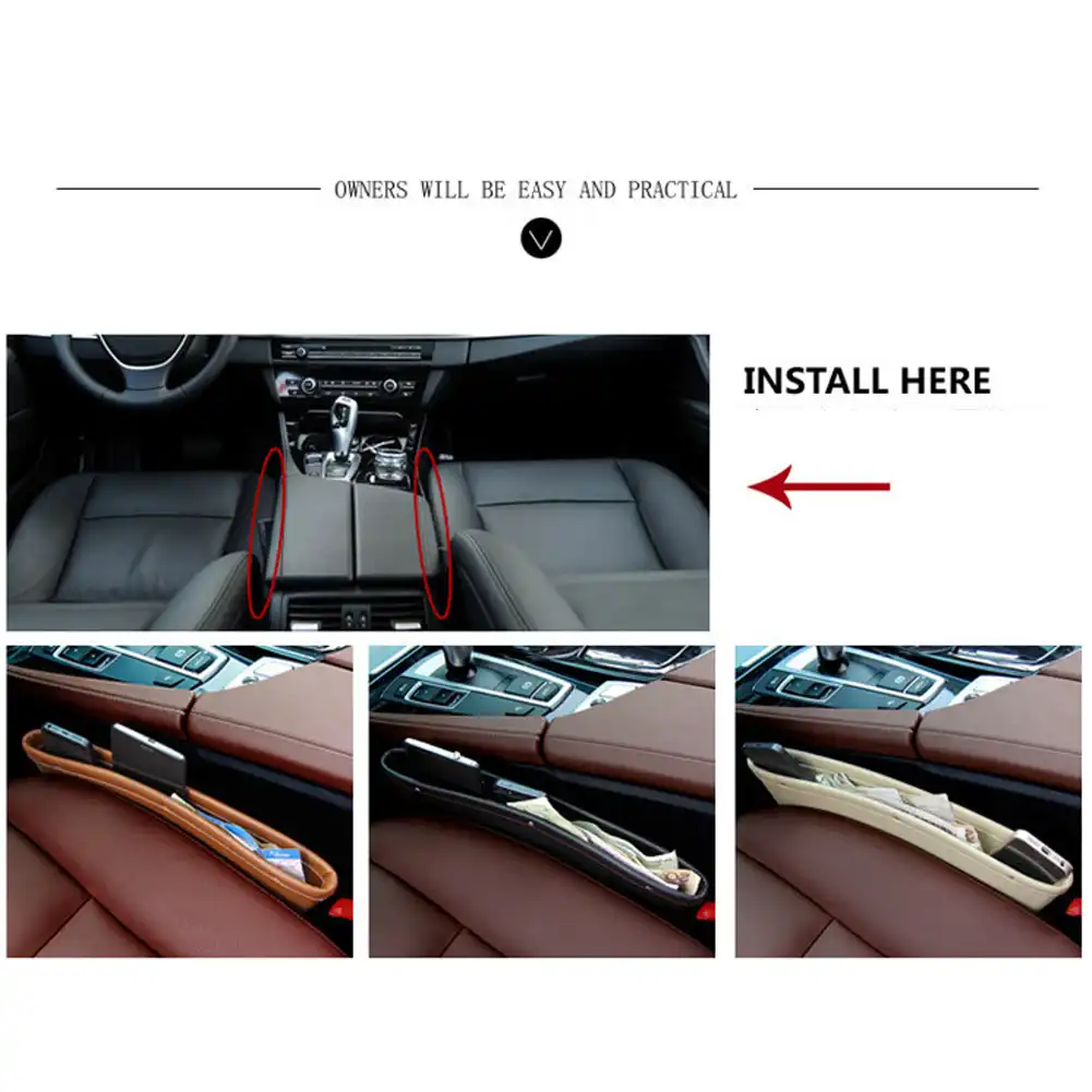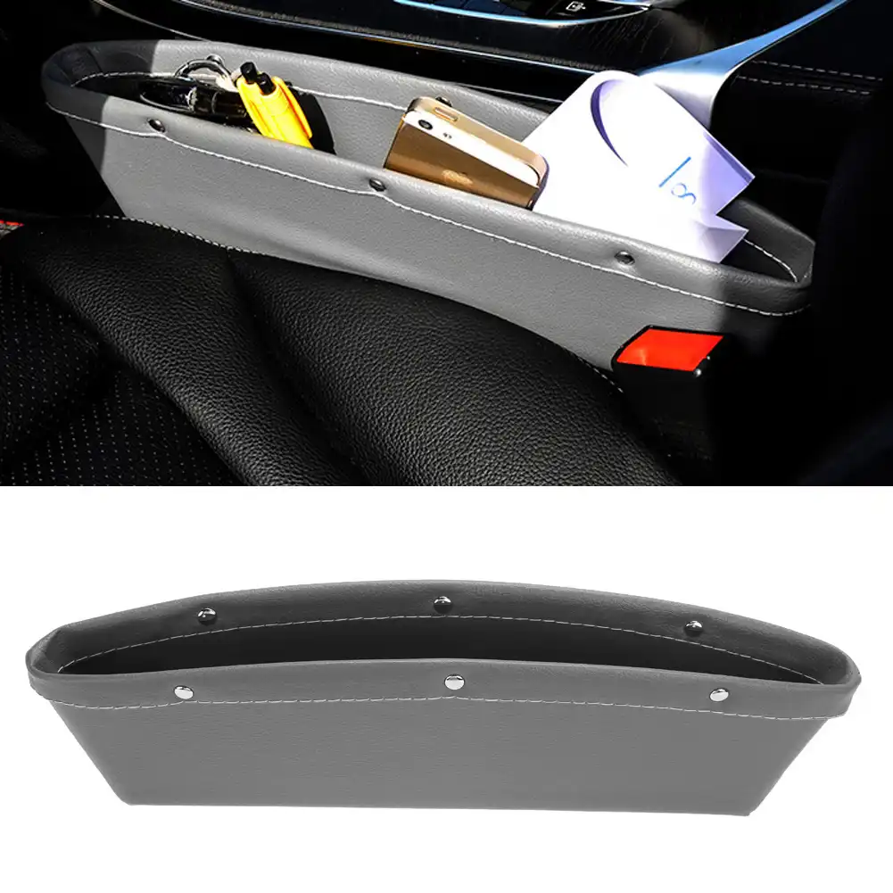 Our Car seat storage box Features novelty And unique appearance That will.Solve the disorder problem Your beloved car Keep items from falling out of the seat gap. Made from High-quality leather This Car Catch is Suitable for all cars. This Car Catch is also necessary no complex installation;Simply slide between console and seat pocket until you find a It is a great spot to relax.
