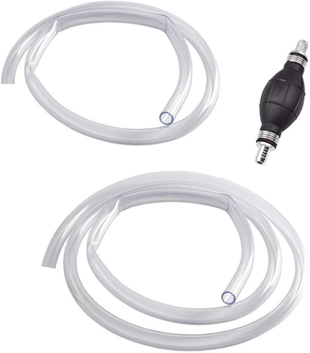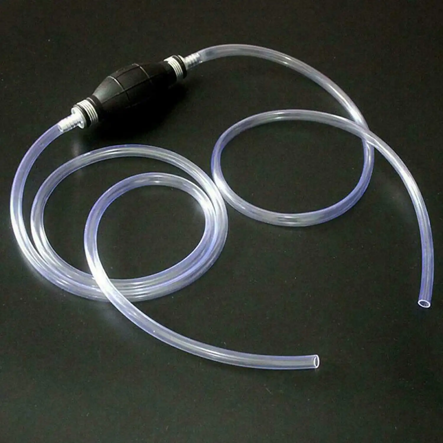 Rubber hand pump that starts siphoning liquid flow quickly. 2 flexible PVC transparent hose (1.2m+0.8m), provides easy reach into containers, petrol resistant, avoid corrosion.