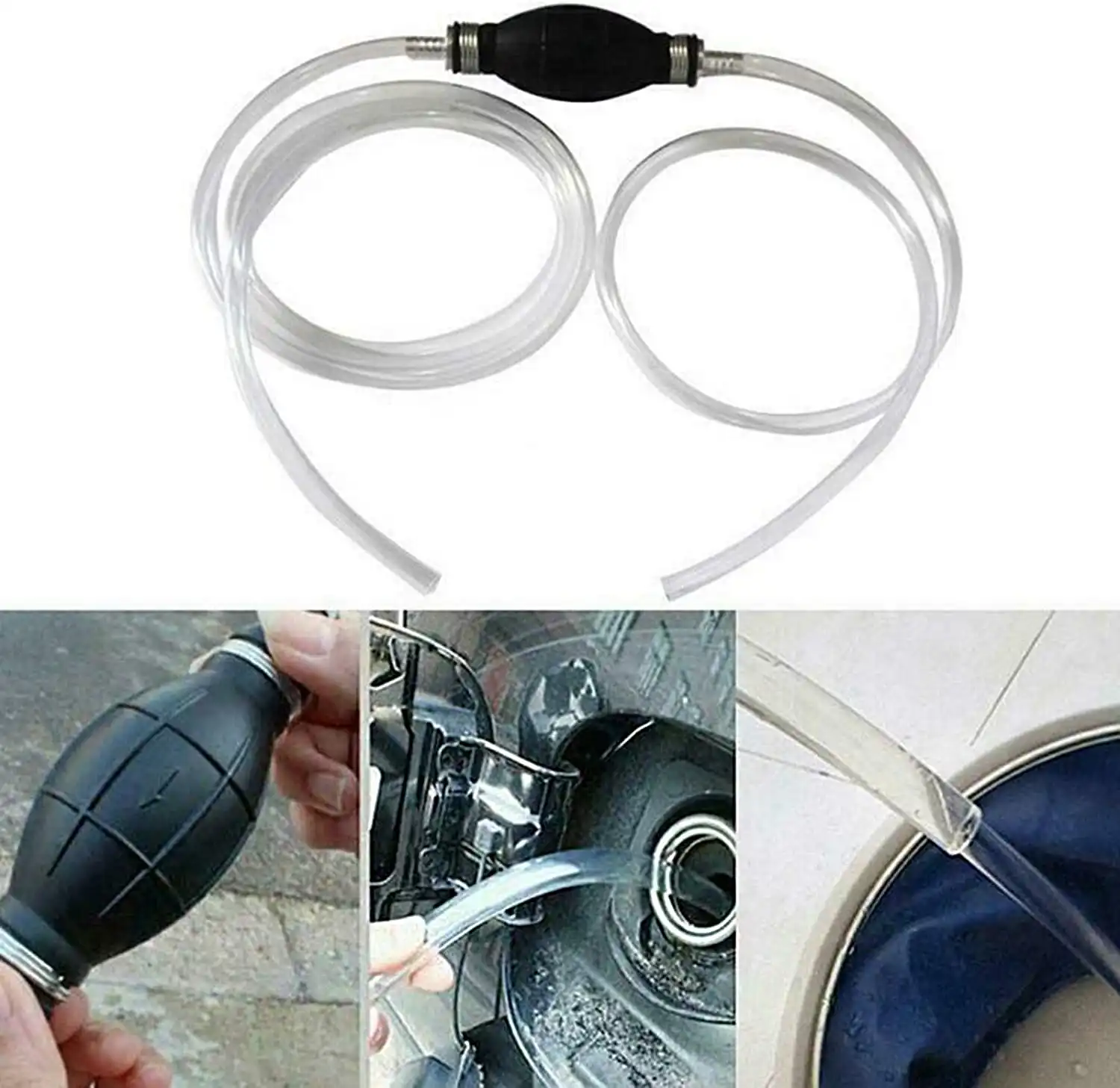 Siphon Hand Pump for gasoline, oil, air, water and other common liquids, ideal for emergency gas transfer. The fluid you are trying to get rid of has to be up HIGHER than the bucket you are flowing into. ideal for emergency gas transfer.