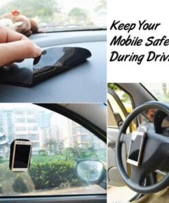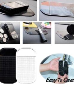 The pad is made of non-toxic silicone and uses a spider sticky technology to cling to almost any surface without glue or adhesive. The pad can also hold other objects like your GPS, garage door openers, coins, sunglasses, and so on. Going hands-free has never been this easy!