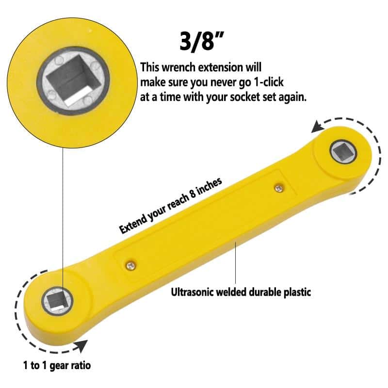 - The Universal Extension Wrench allows you to reach out to corners didn’t work before, allowing the ratchet to swing enough to ensure the work goes smooth and efficient. It is especially recommended for the usage of household, mechanical, electrical maintenance, car repair, including home decoration.: