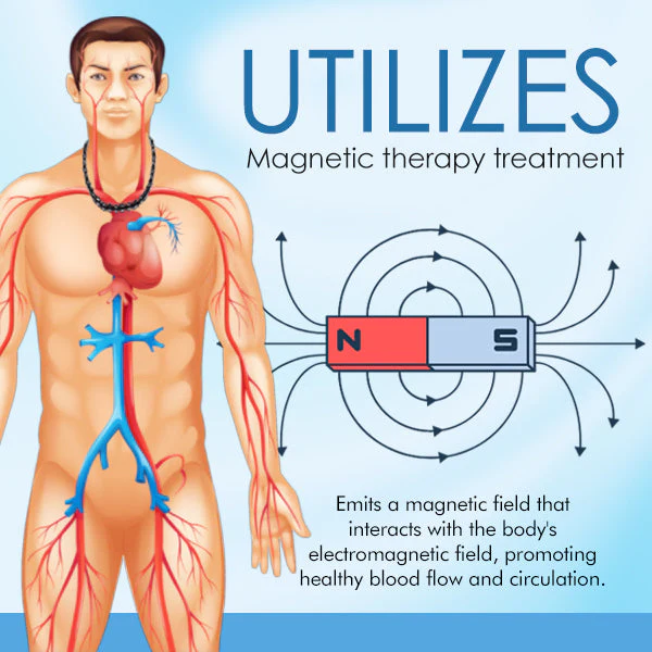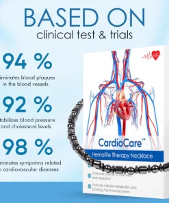 CardioCare™ Hematite Therapy Necklace is a therapeutic accessory that works by utilizing a combination of magnetic therapy, far-infrared therapy, & negative ions. When worn close to the skin, the necklace emits a magnetic field that interacts with the body’s electromagnetic field, promoting healthy blood flow and circulation.