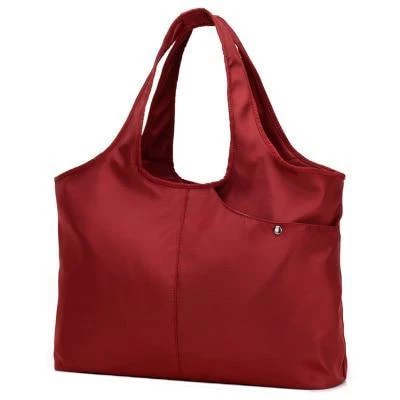 I love bags made by Baggallini and this large carry-all tote is no exception. It is made of 100% nylon and has a zippered closure on top. It comes with an adjustable shoulder strap and a shorter strap that can be attached to your luggage when traveling. It has zippered organizers for convenience and is lightweight and water resistant. Its dimensions are 14.75″ H x 15″ W x 7″ D. I highly recommend this product.