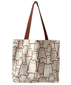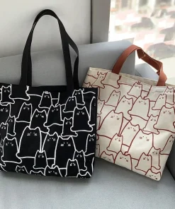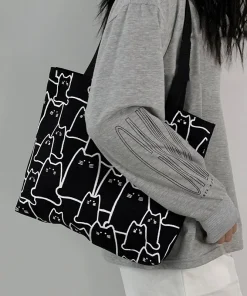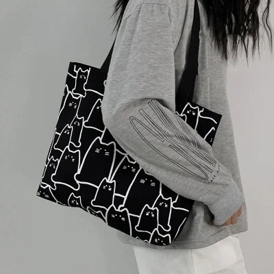 Cute Cat Handbags Shoulder Fashion Canvas Casual Shopping Girls Women Graphic Tote BagJapanese Cartoon Small Shoulder