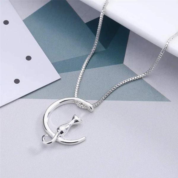 - Name: Cat & Moon Pendant Necklace Jewelry