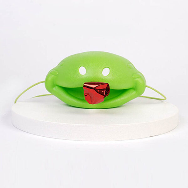 Both players wear chameleon mouth masks with extended red tongues and compete against each other in this highly entertaining game.